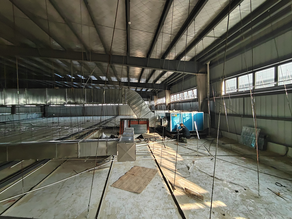 巢湖某工厂食堂安装使用安徽国茂机电机械式油烟净化项目安装调试中