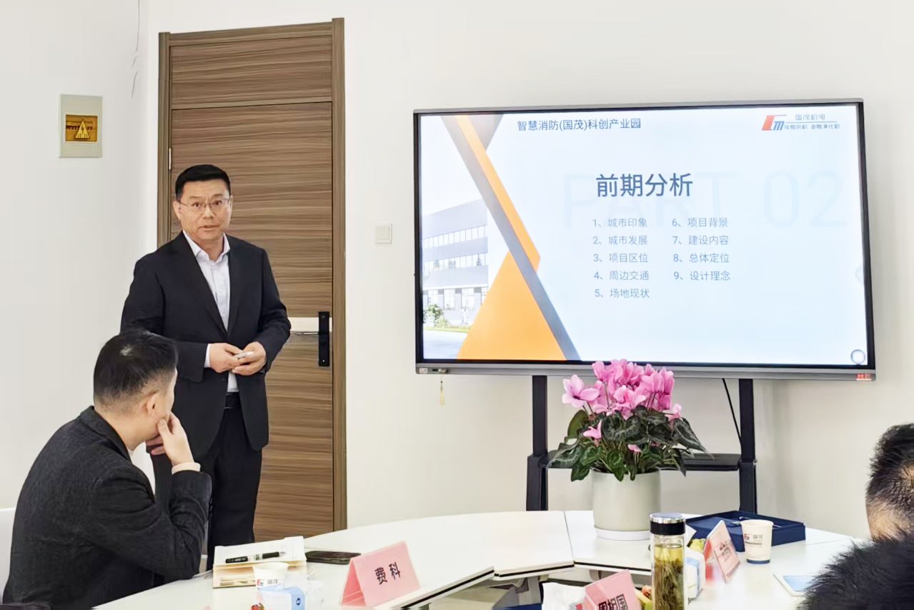 安徽国茂机电设备有限公司总经理张翔向邹书记一行详细介绍了公司的发展规划,并就智慧消防科创园区建设、产业技术升级等展开深入座谈。张翔对家乡领导的到来表示诚挚感谢,这体现了家乡政府对企业的关心、信任和重视。他简述了国茂公司未来将聚焦数智升级与产业协同,通过引入数字化智能化技术,整合消防、人防、环保、通风等领域资源,致力于打造“消防一站式解决方案供应商”,发挥产业聚合效应,形成完整的上下游产业链集群。