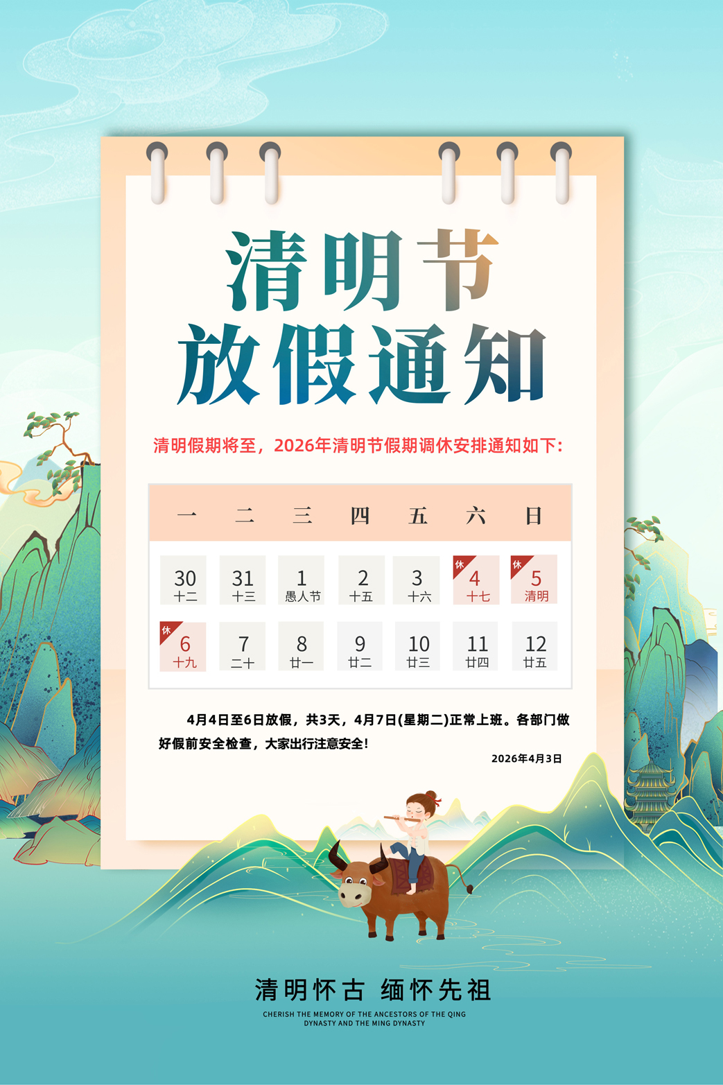 安徽国茂机电2026年清明节放假调休安排通知