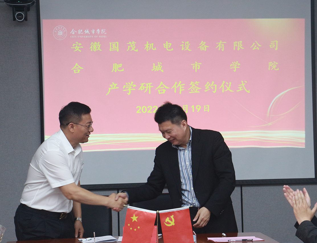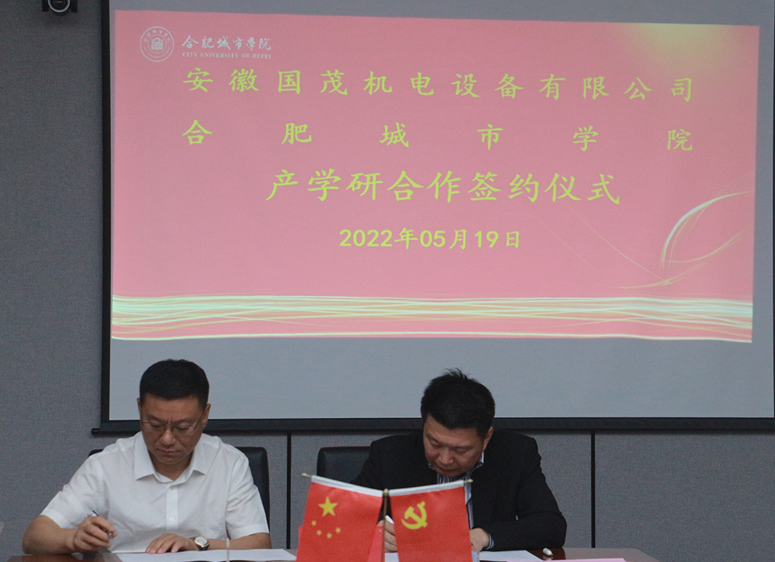 2022年5月19日安徽国茂机电设备有限公司与合肥城市学院签订校企产学研合作事项