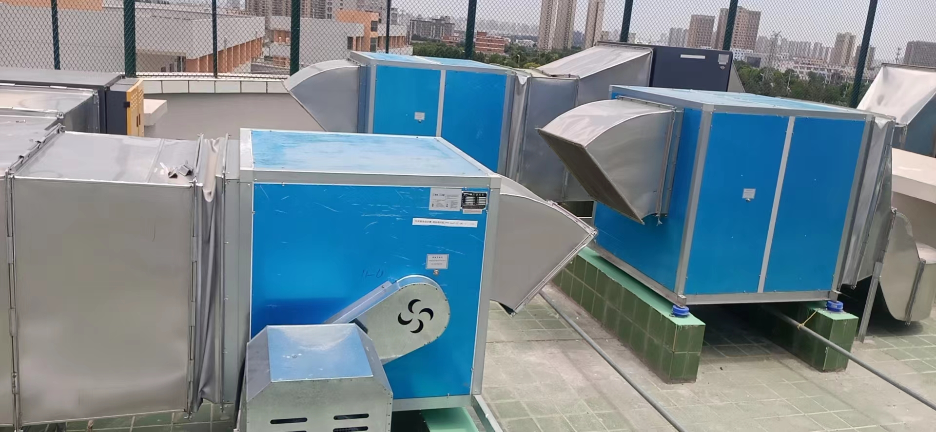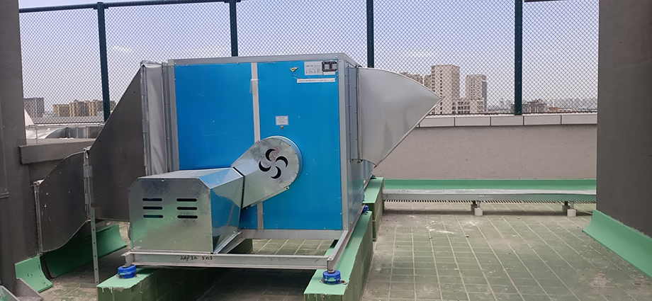 合肥六中新校区安装使用国茂消防排烟风机及油烟净化器现场实拍