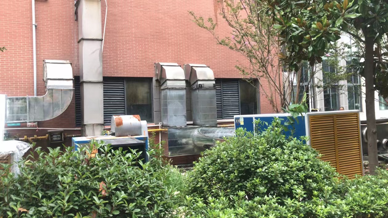 本次选用的两台机械式油烟净化一体机,含风机+净化+消声一体,安装比较简单,油烟净化效率高,后期使用无需清洗维护,风机与净化一体,使用免监管。 YJ-Z型组合式高效油烟净化机组,主要实用于宾馆、饭店、酒家、餐厅、食堂及商业综合体和美食街餐饮场所的油烟污染气体的净化治理,能有效减少空气污染,是一种广泛应用的环保餐饮厨房净化设备。