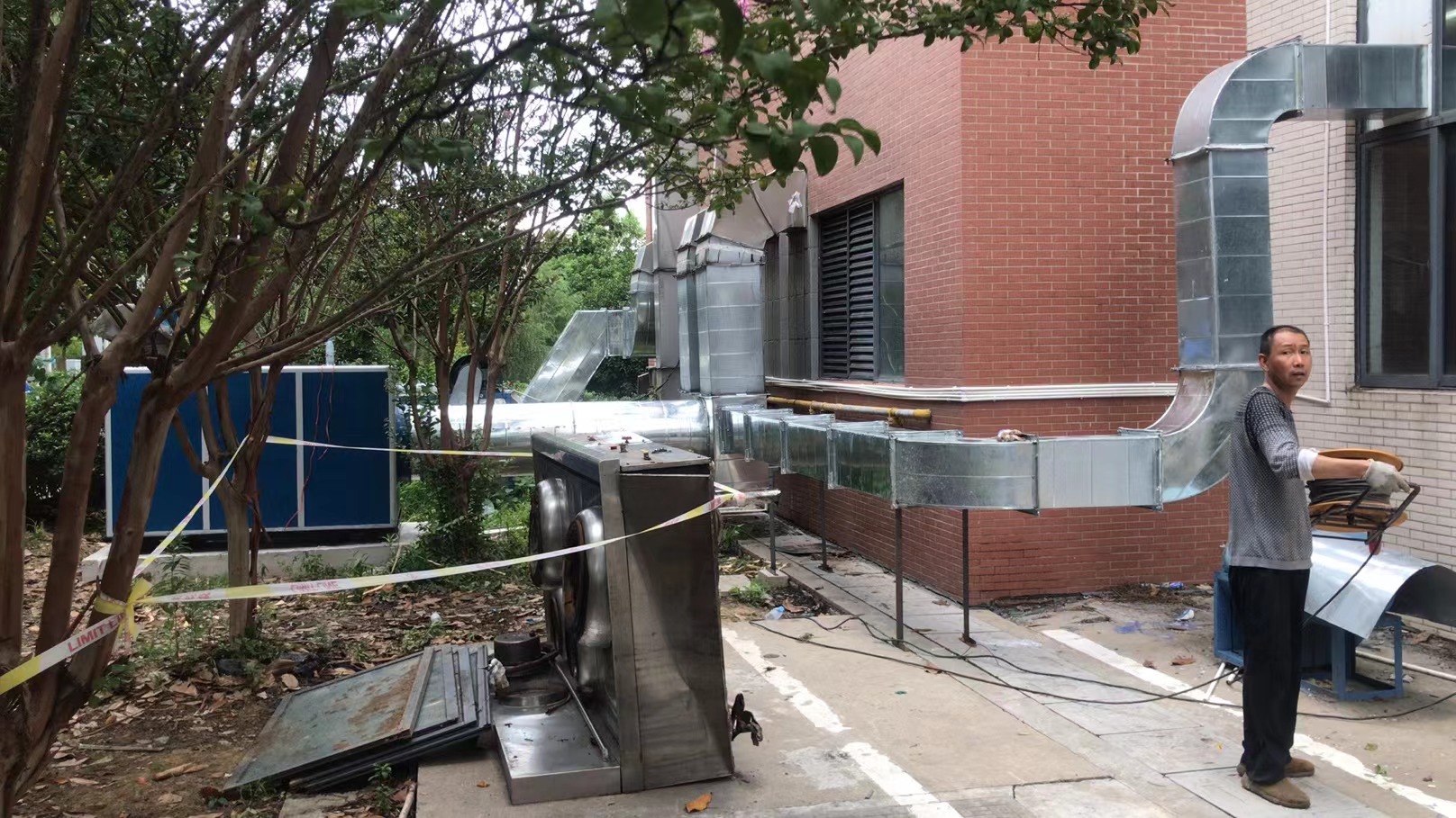 皖江工学院学校食堂安装国茂餐饮油烟净化一体机组现场实拍